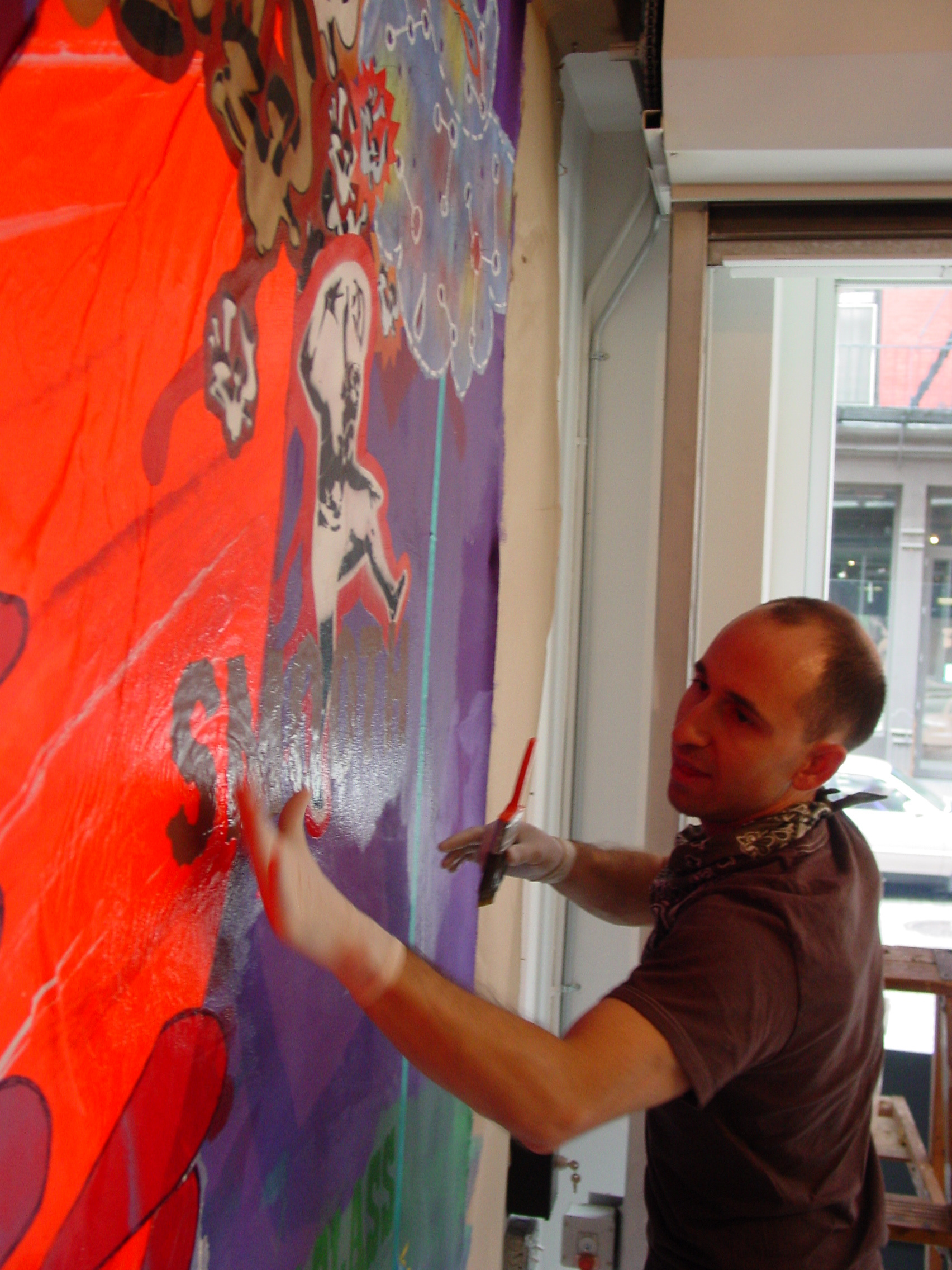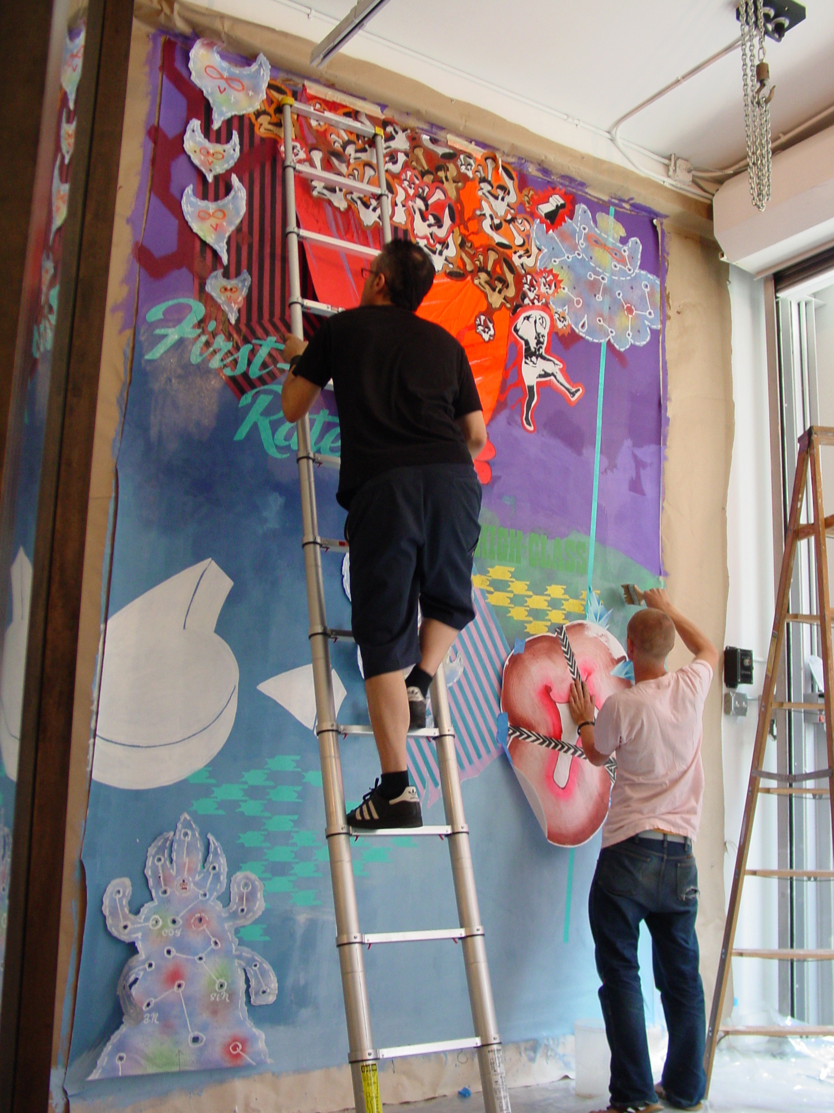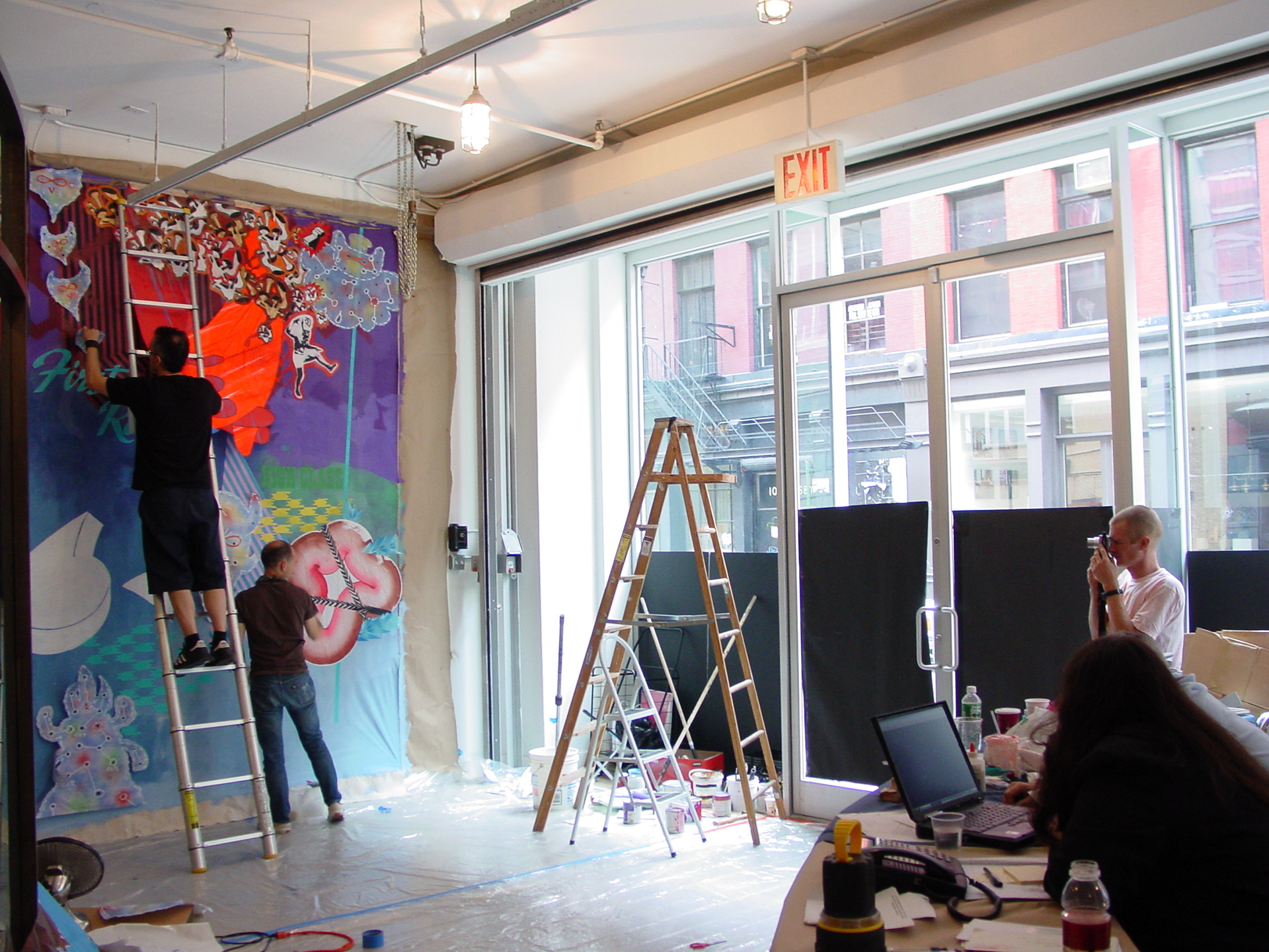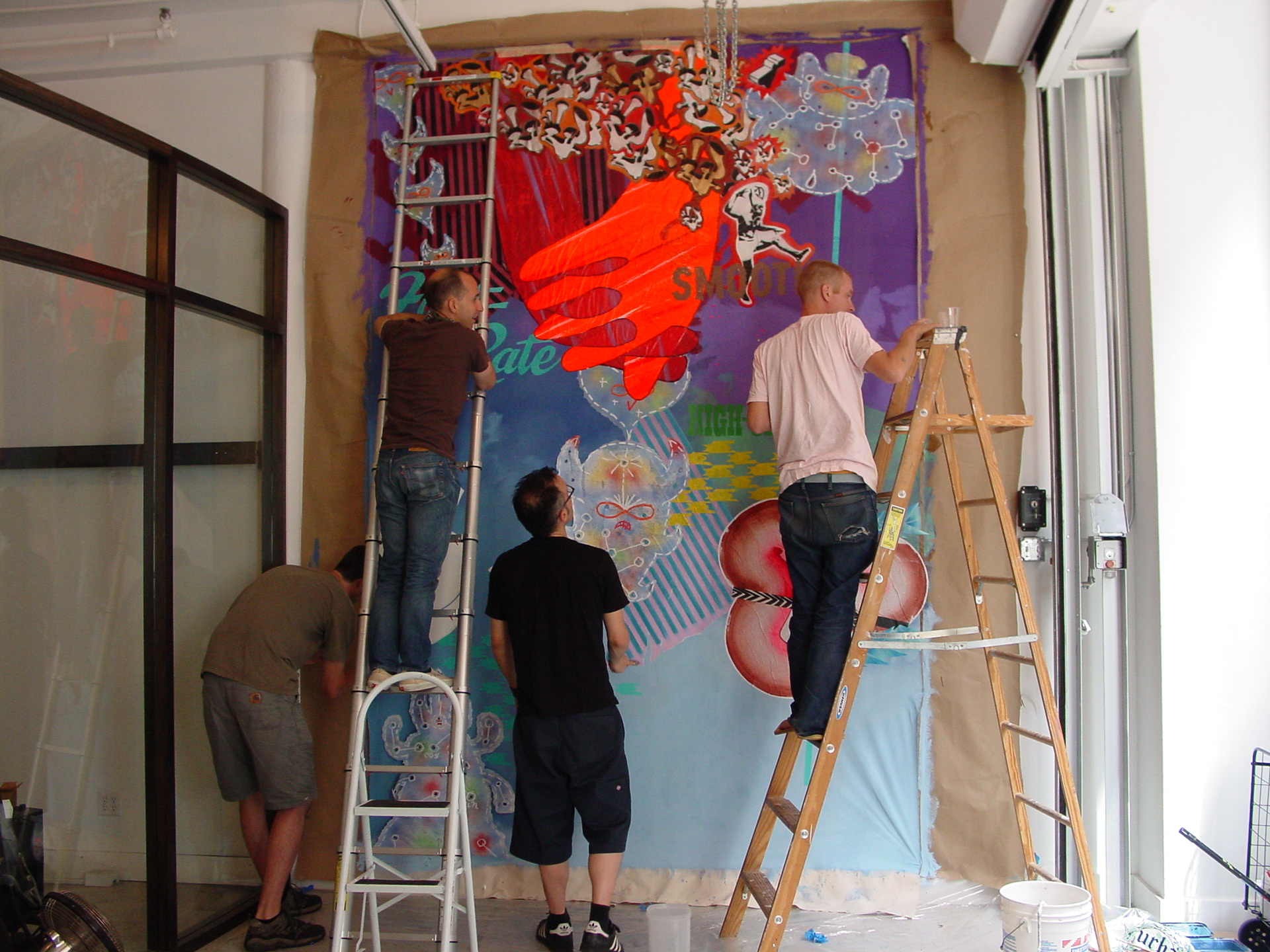 momo, damian m, infinity, and kelly burns - collaborative painting at blinde design, 2005