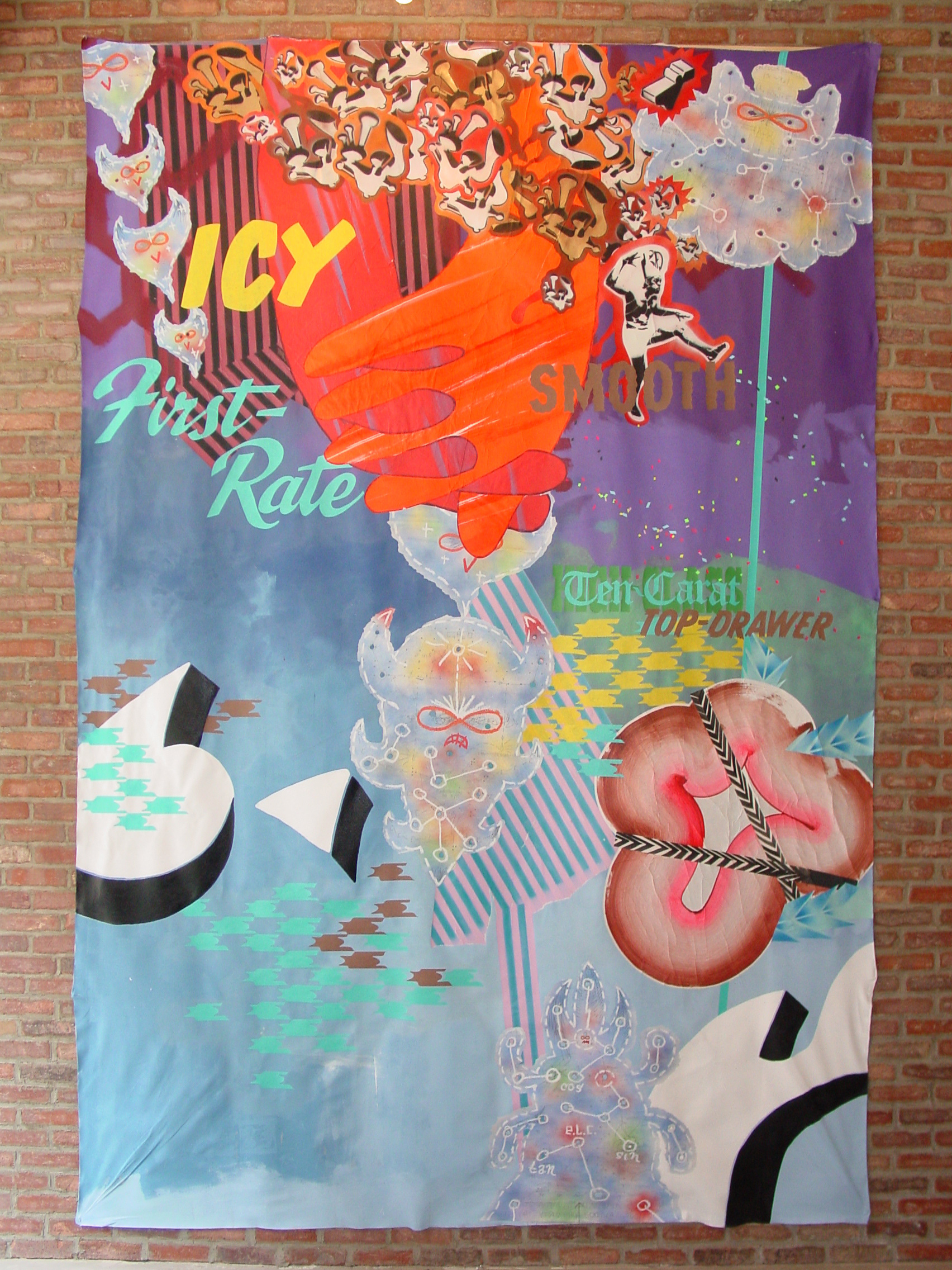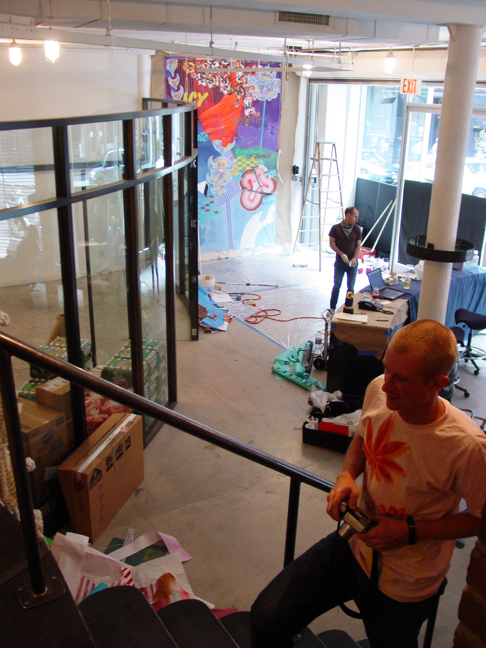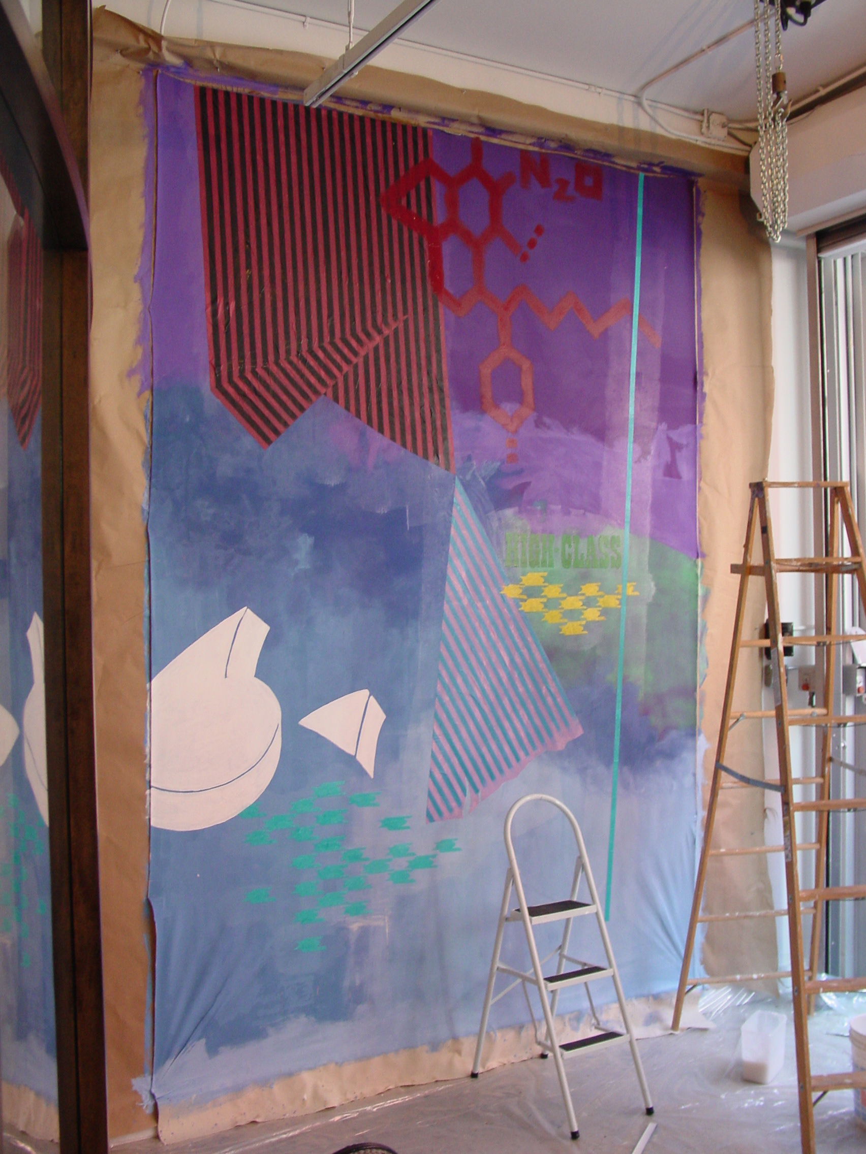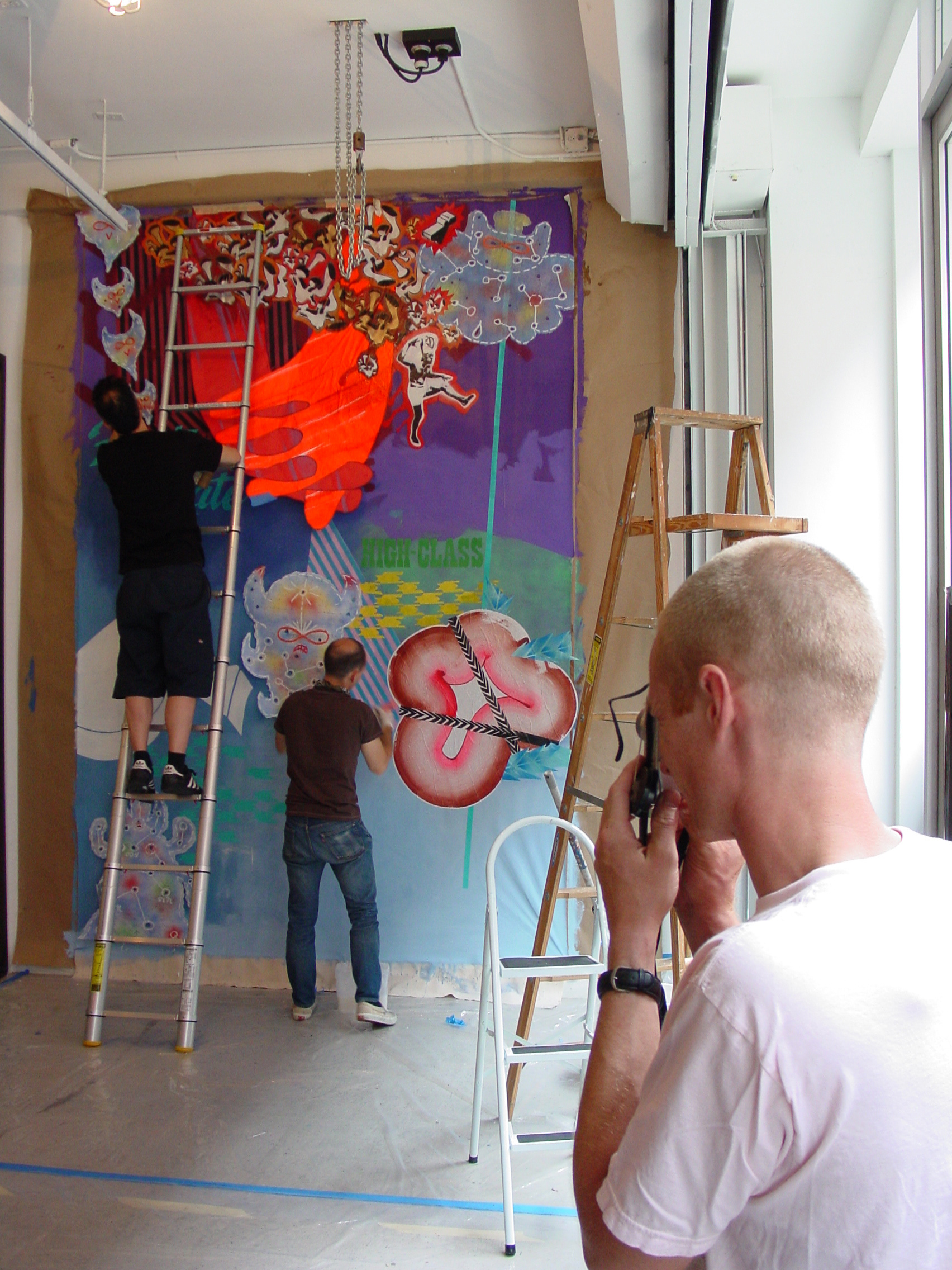 momo, damian m, infinity, and kelly burns - collaborative painting at blinde design, 2005